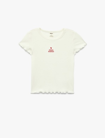 Pamuklu Kısa Kollu Bisiklet Yaka Nakışlı Tişört Sepete Ekle