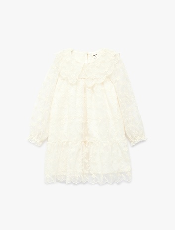 Balon Kollu Bebe Yaka Brodeli Tüllü Elbise Sepete Ekle