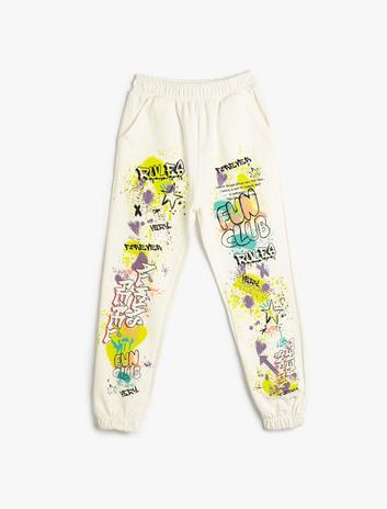 Jogger Eşofman Altı Grafiti Temalı Yazı Detaylı Beli Lastikli Cepli Sepete Ekle