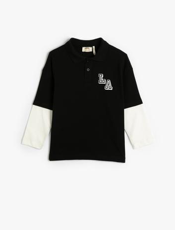 Tişört Uzun Kollu Polo Yaka Kolej Baskılı Renk Bloklu Pamuklu Sepete Ekle