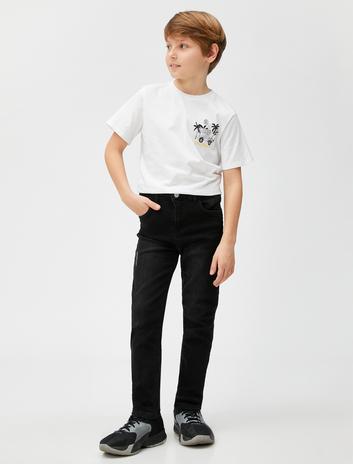 Erkek Çocuk Palmiye Baskı Detaylı Baskılı Kısa Kollu Tişört Bisiklet Yaka Pamuklu