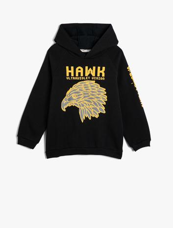 Erkek Çocuk Kapşonlu Sweatshirt Şardonlu Şahin Baskılı