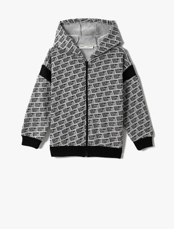 Fermuarlı Kapüşonlu Hırka Baskılı Sepete Ekle