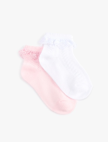 Kız Bebek Dantelli Dokulu 2'li Çorap