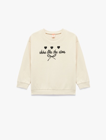Uzun Kollu Bisiklet Yaka Pamuklu Baskılı Sweatshirt Sepete Ekle