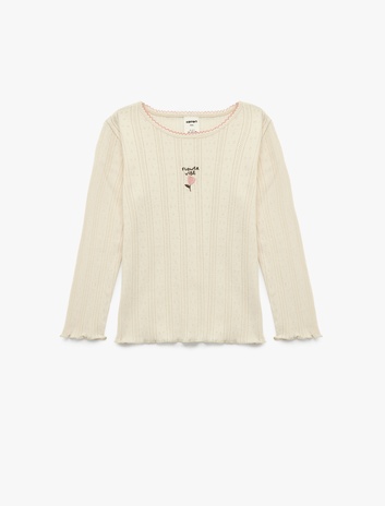Pamuklu Bisiklet Yaka Nakış Detaylı Uzun Kollu Tişört Sepete Ekle
