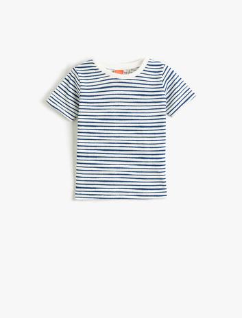 Erkek Bebek Çizgili Basic Tişört Kısa Kollu Bisiklet Yaka Pamuklu