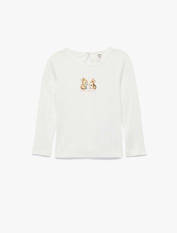 Tavşan Baskılı Uzun Kollu Bisiklet Yaka Tişört Sepete Ekle