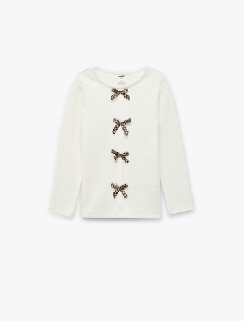 Kız Bebek Uzun Kollu Fiyonk Detaylı Bisiklet Yaka Pamuklu Tişört