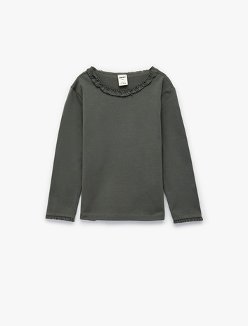Fırfırlı Uzun Kollu Bisiklet Yaka Pamuklu Basic Tişört Sepete Ekle