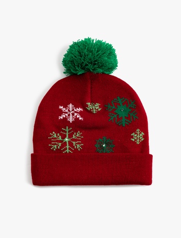 Triko Bere Kar Desenli Ponpon Detaylı Sepete Ekle