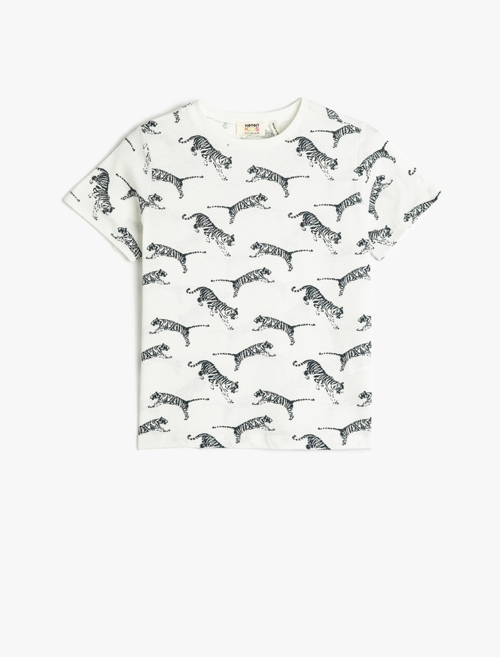 Tişört Kaplan Baskılı Kısa Kollu Bisiklet Yaka Pamuklu Sepete Ekle