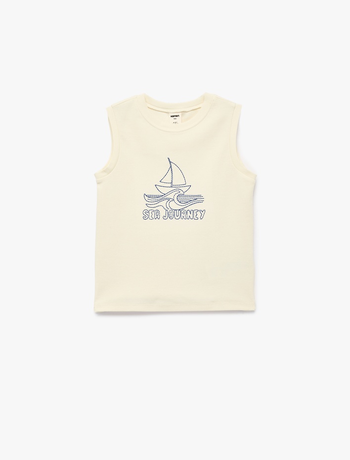 Bisiklet Yaka Kolsuz Pamuklu Nakış Detaylı Atlet Sepete Ekle