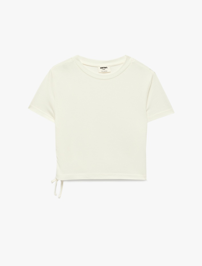 Modal Karışımlı Büzgü Detaylı Kısa Kollu Bisiklet Yaka Crop Tişört Sepete Ekle