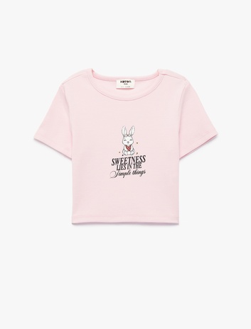 Pamuklu Kısa Kollu Bisiklet Yaka Ribanalı Tavşan Baskılı Tişört Sepete Ekle