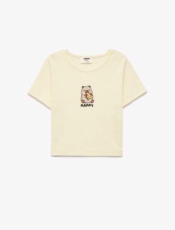 Bisiklet Yaka Kısa Kollu Nakışlı Pamuklu Tişört Sepete Ekle