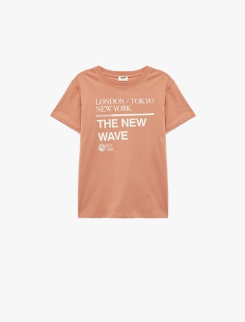 Pamuklu Kısa Kollu Bisiklet Yaka Baskılı Tişört Sepete Ekle