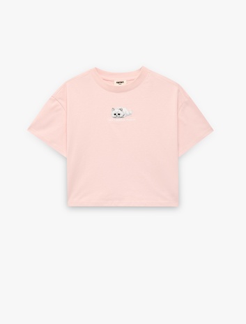 Pamuklu Kısa Kollu Bisiklet Yaka Baskılı Tişört Sepete Ekle