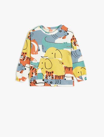 Erkek Bebek Sweatshirt Hayvanlar Baskılı Uzun Kollu Şardonlu