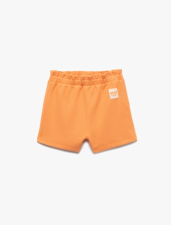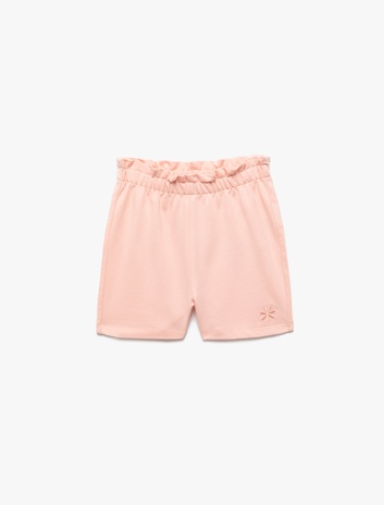 Pamuklu Dokulu Aplike Detaylı Beli Lastikli Şort Sepete Ekle