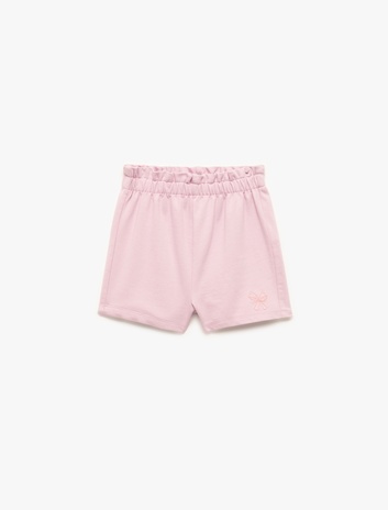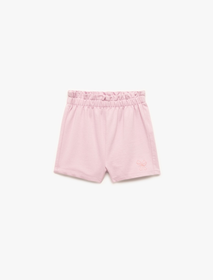 Pamuklu Beli Lastikli Fiyonk Nakışlı Mini Şort Sepete Ekle