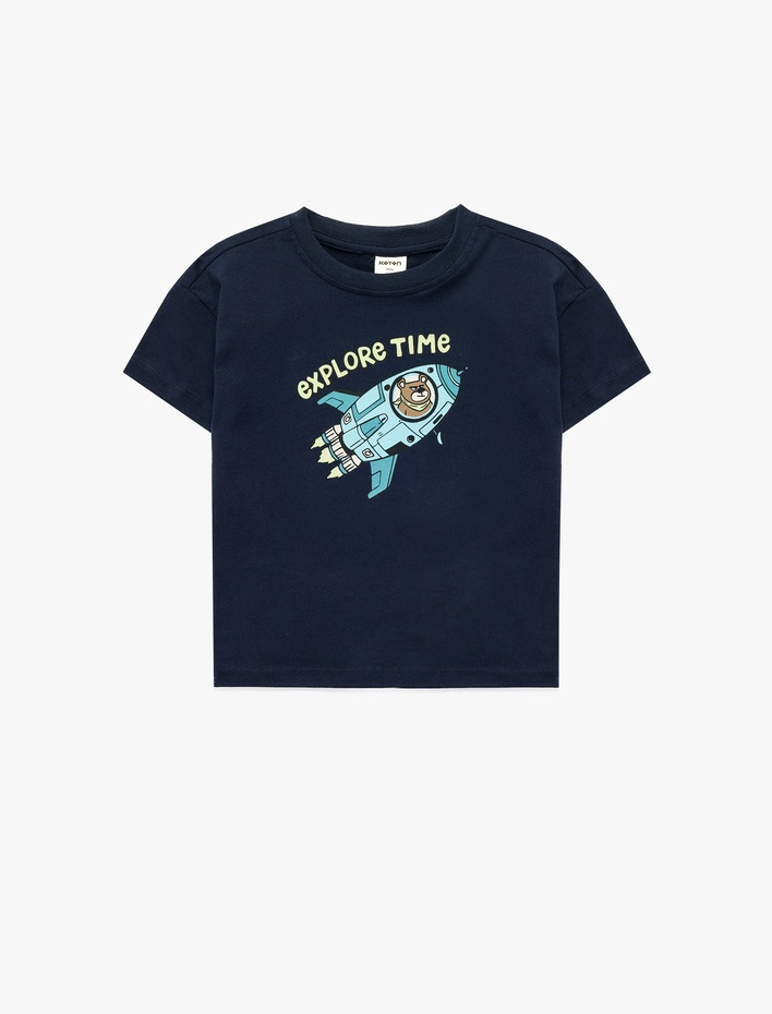 Pamuklu Kısa Kollu Bisiklet Yaka Baskılı Tişört Sepete Ekle