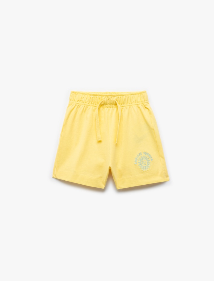 Pamuklu Cep Detaylı Beli Bağcıklı Baskılı Şort Sepete Ekle