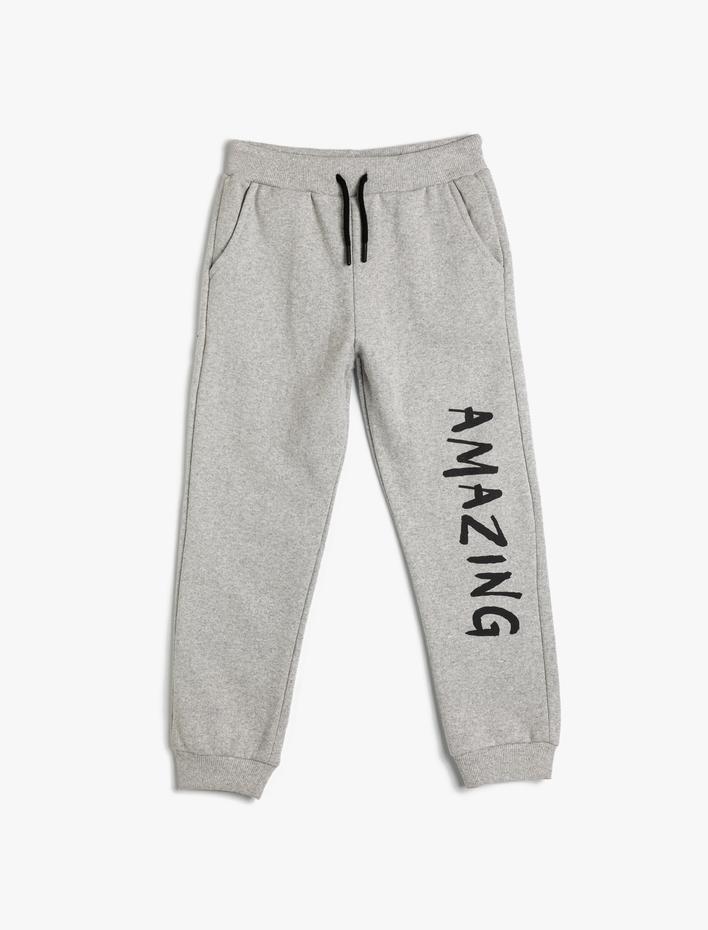 Erkek Çocuk Basic Jogger Eşofman Altı Yazı Baskılı Beli Bağlamalı Şardonlu