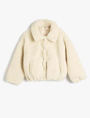 Kız Çocuk Peluş Mont Düğme Kapamalı Cepli