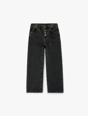 Kız Çocuk Pamuklu Düğme Detaylı Beli Ayarlanabilir Lastikli Denim Pantolon