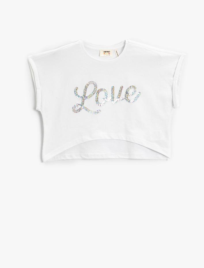 Kız Çocuk Crop Tişört Oversize Kısa Kollu Pul Payet İşlemeli Pamuklu