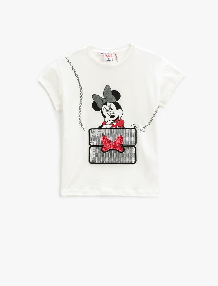 Minnie Mouse Tişört Baskılı Lisanslı Pul Payet İşlemeli Kısa Kollu Bisiklet Yaka Sepete Ekle