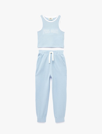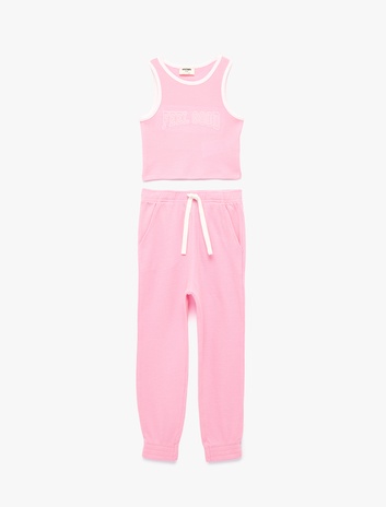 Kız Çocuk Pamuklu Bisiklet Yaka Askılı Atlet ve Eşofman Altı 2'li Set