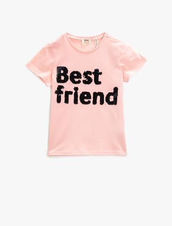 Kız Çocuk Çift Taraflı Pullu Payetli Püsküllü Kısa Kollu Tişört Pamuklu