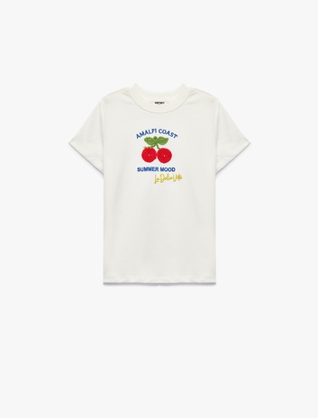 Bisiklet Yaka Kısa Kollu Kiraz Nakış Detaylı Pamuklu Tişört Sepete Ekle