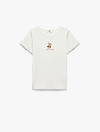 Pamuklu Köpek Nakış Detaylı Bisiklet Yaka Kısa Kollu Tişört Sepete Ekle