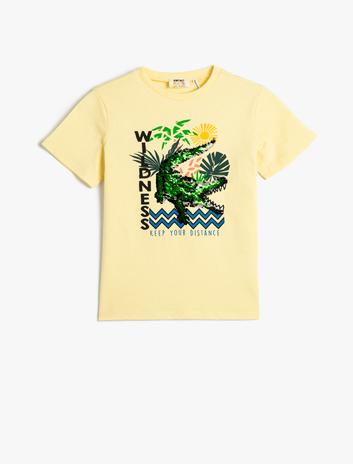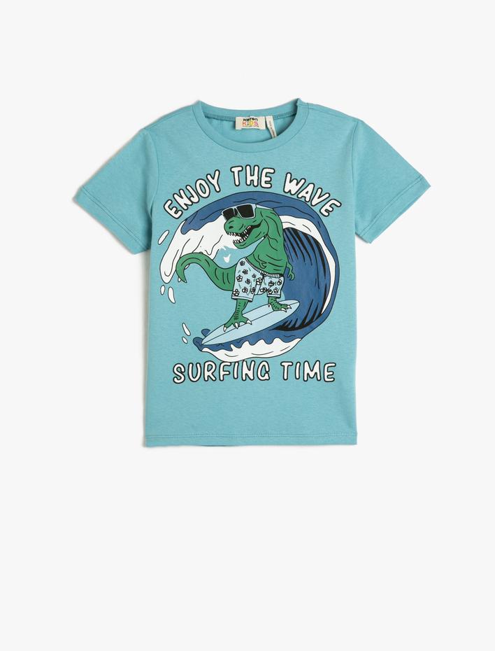 Dinozor Baskılı Kısa Kollu Tişört Bisiklet Yaka Pamuklu Sepete Ekle