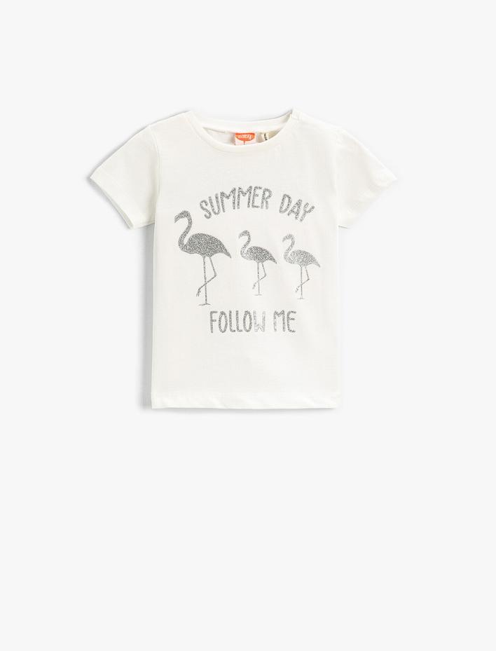 Kız Bebek Baskılı Kısa Kollu Tişört Pamuklu