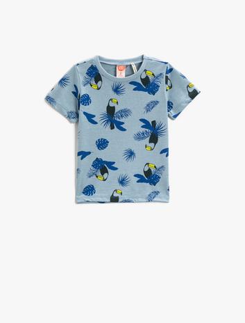 Erkek Bebek Papağan Baskılı Kısa Kollu Tişört Bisiklet Yaka