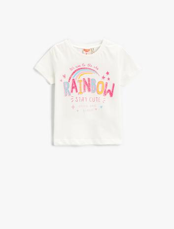 Kız Bebek Gökkuşağı Baskılı Kısa Kollu Tişört Pamuklu