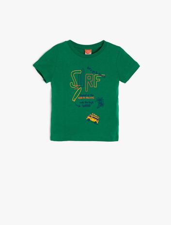 Erkek Bebek Baskı Detaylı Bisiklet Yaka Kısa Kollu Pamuklu Tişört