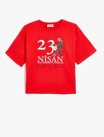 Kız Çocuk 23 Nisan Baskılı Tişört Bisiklet Yaka Kısa Kollu Pamuklu