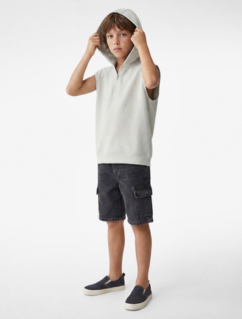 Erkek Çocuk Yarım Fermuarlı Viskon Karışımlı Kolsuz Oversize Kapüşonlu Tişört