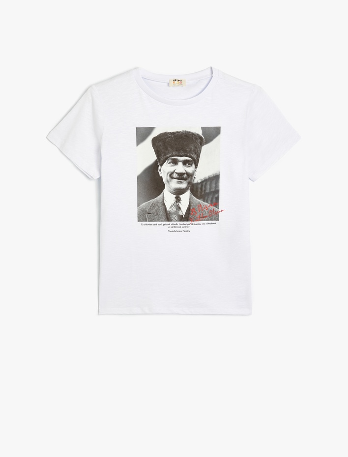 Atatürk Baskılı Tişört Kısa Kollu Bisiklet Yaka Pamuklu Sepete Ekle