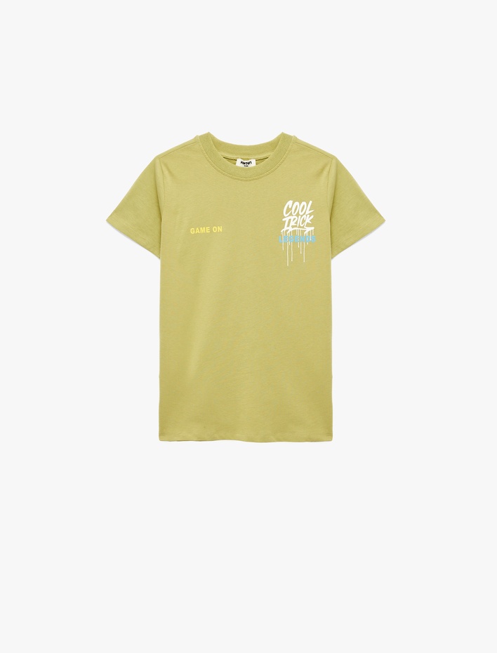 Pamuklu Kısa Kollu Bisiklet Yaka Baskılı Tişört Sepete Ekle