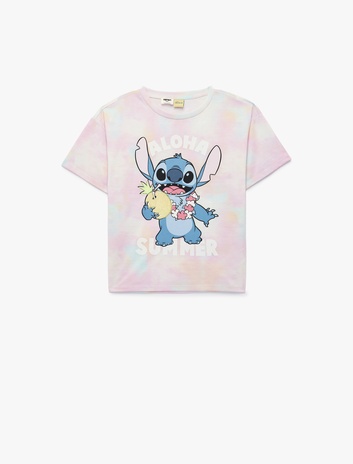 Stitch Baskılı Kısa Kollu Bisiklet Yaka Pamuklu Lisanslı Tişört Sepete Ekle