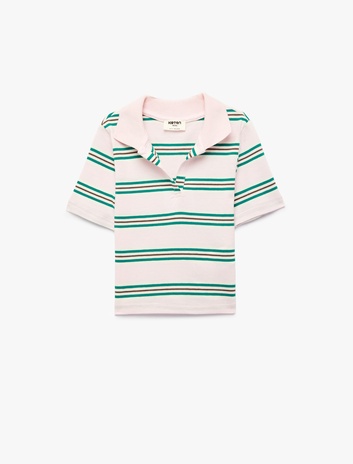 Pamuklu Slim Fit Kısa Kollu Crop Polo Yaka Çizgili Tişört Sepete Ekle