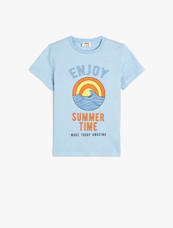 Tişört Yaz Temalı Kısa Kollu Bisiklet Yaka Pamuklu Sepete Ekle