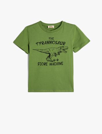 Dinozor Baskılı Tişört Kısa Kollu Bisiklet Yaka Pamuklu Sepete Ekle