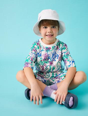 Grafiti Baskılı Kısa Kollu Tişört Pamuklu Sepete Ekle